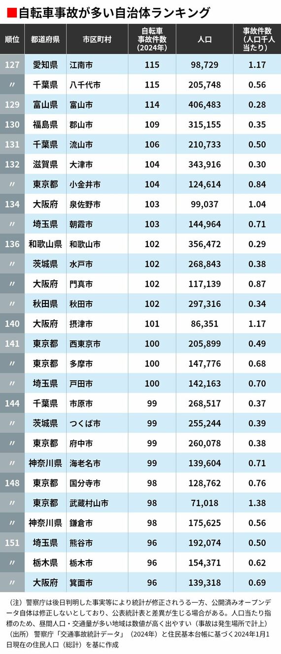 「自転車事故が多い」自治体ランキング300 5位は神奈川県川崎市、4位は福岡市、ではトップ3は?