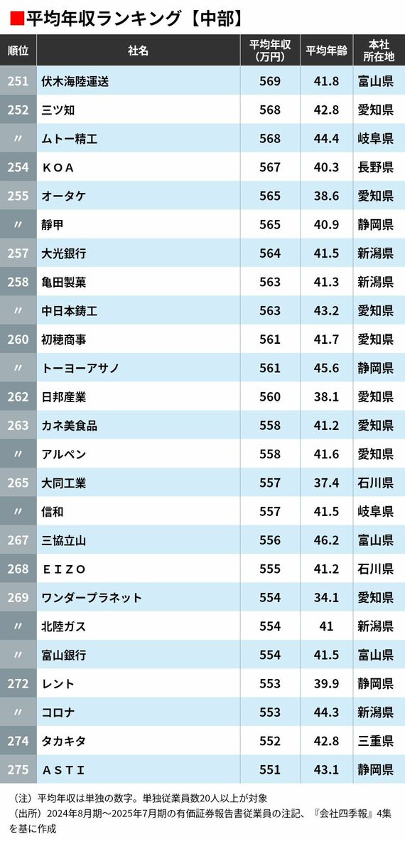 平均年収ランキング「中部に本社を置く351社」 高年収の企業はどこか