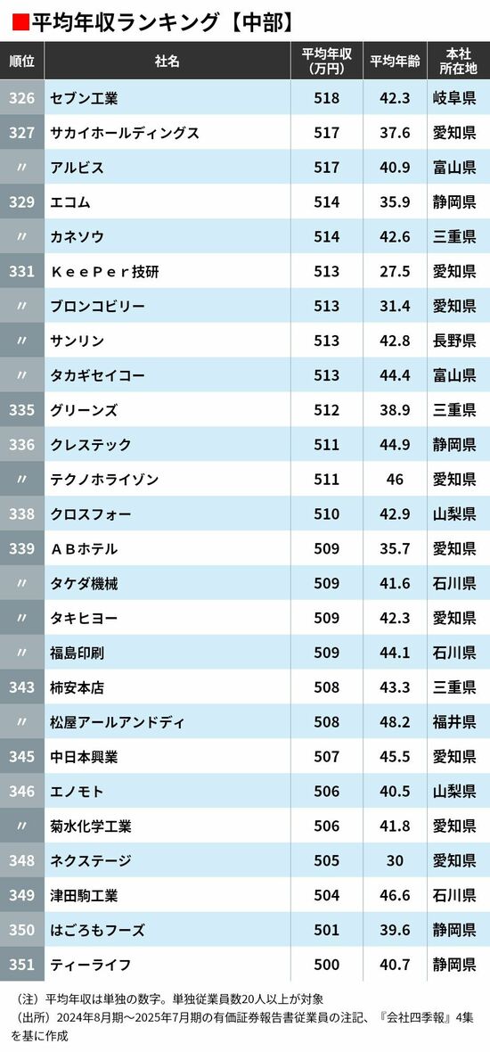 政治・経済・投資 平均年収ランキング「中部に本社を置く351社」 高年収の企業はどこか 2分で読める 公開日時:2026/01/02 06:30 東洋経済オンライン編集部 フォロー 1/15 PAGES 2/15 PAGES 3/15 PAGES 4/15 PAGES 5/15 PAGES 6/15 PAGES 7/15 PAGES 8/15 PAGES 9/15 PAGES 10/15 PAGES 11/15 PAGES 12/15 PAGES 13/15 PAGES 14/15 PAGES 15/15 PAGES 326〜351位