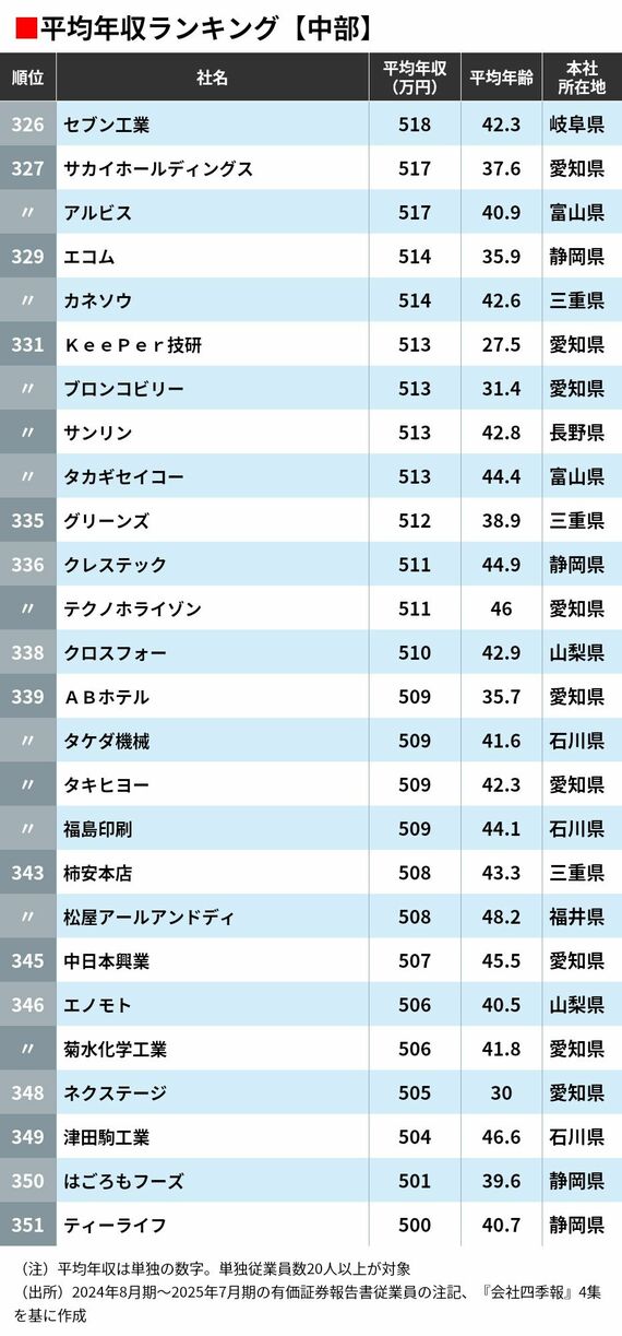 平均年収ランキング「中部に本社を置く351社」 高年収の企業はどこか