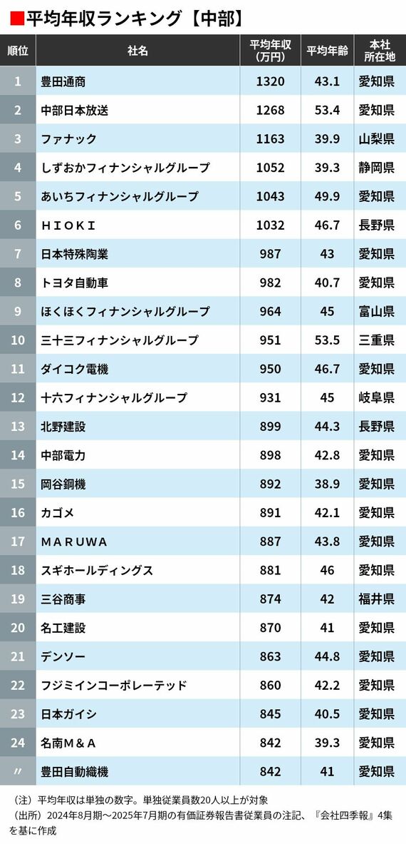 平均年収ランキング「中部に本社を置く351社」 高年収の企業はどこか