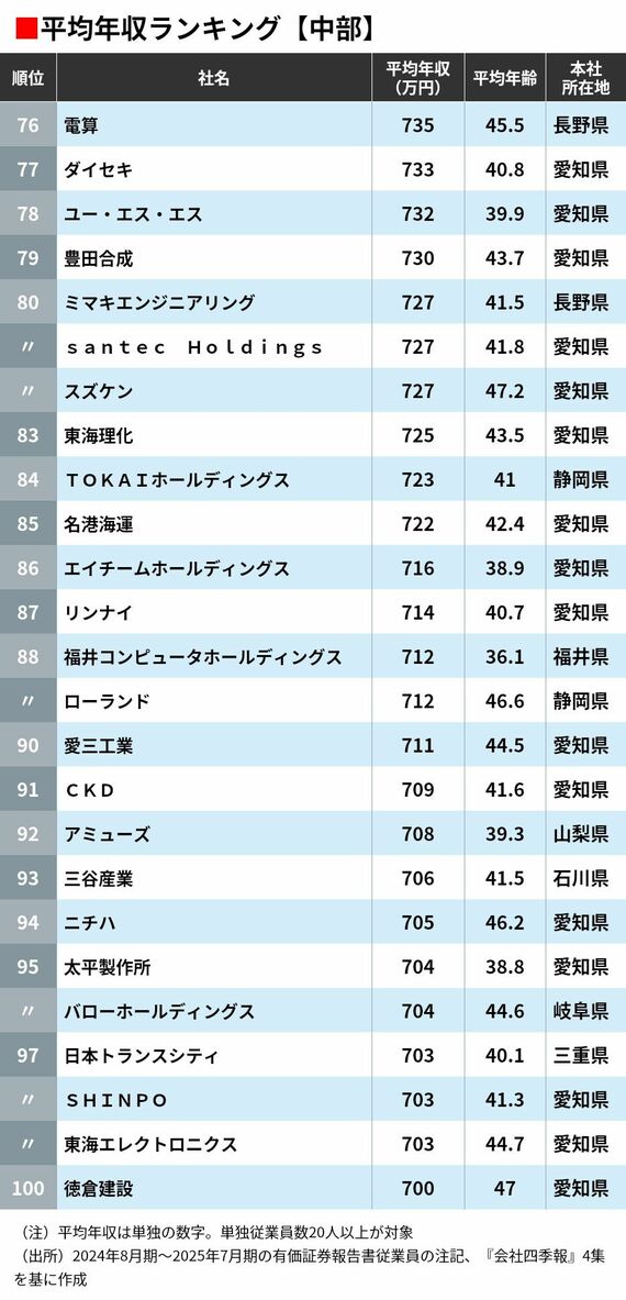 平均年収ランキング「中部に本社を置く351社」 高年収の企業はどこか
