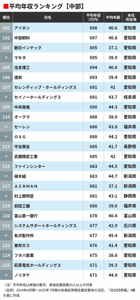 平均年収ランキング「中部に本社を置く351社」 高年収の企業はどこか