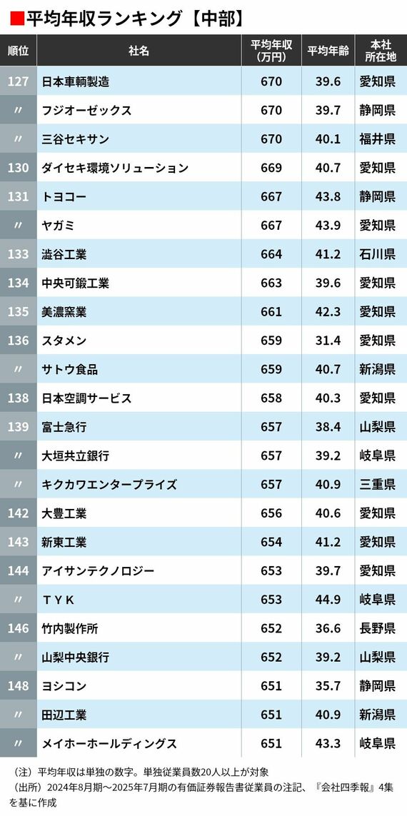 平均年収ランキング「中部に本社を置く351社」 高年収の企業はどこか