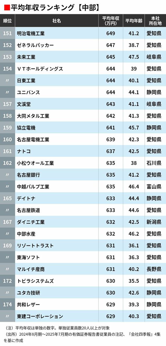 平均年収ランキング「中部に本社を置く351社」 高年収の企業はどこか