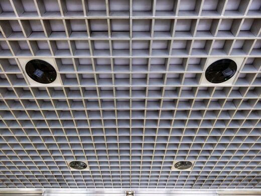 9階大宴会場の天井は、当時の溶接工たちの確かな技術で支えられている(筆者撮影)
