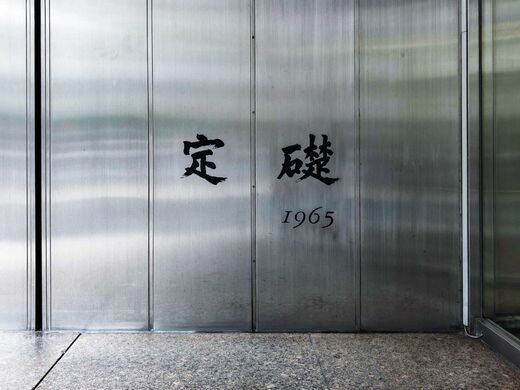 表玄関の下部に記された端整な「定礎」。ステンレス・エッチング仕上げと呼ばれる当時最先端の製品だそうだ(筆者撮影)