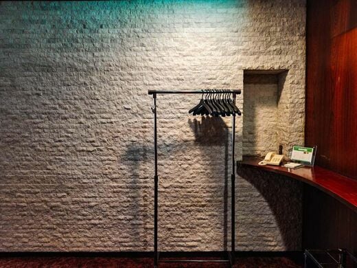 ドアを開けるとまず目に入るのはミラノ産の大理石の壁面(筆者撮影)