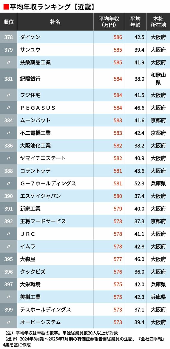 平均年収ランキング「近畿」に本社を置く504社 3位は朝日放送グループホールディングス、2位は伊藤忠商事、では1位は?