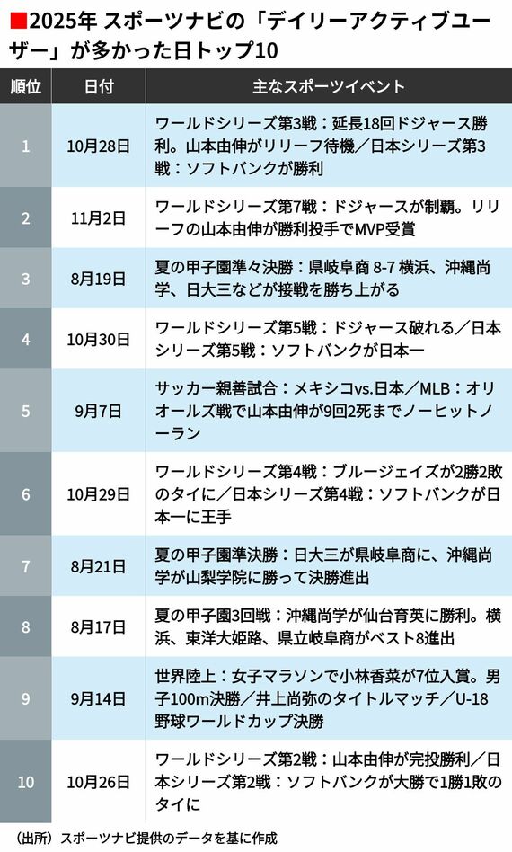 大谷翔平のMLB、甲子園、世界陸上…2025年スポーツが「最も熱かった日」トップ10