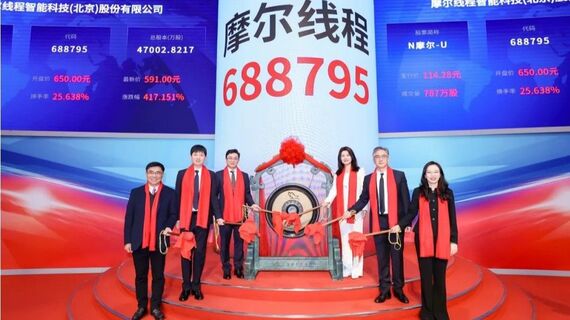 25年12月5日、ムーアスレッドは上海証券取引所のハイテク企業向け市場「科創板」に上場を果たし、11日には株価が941元(約2万1000円)と公募価格(1株114.28元)の8倍強にまで上昇した。