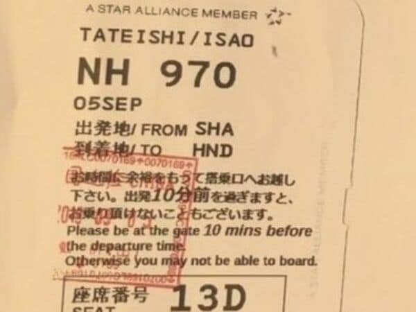立石勲が2019年夏ごろに上海を訪れていた可能性を示す航空チケットの半券の画像が残っている(写真:関係者提供)