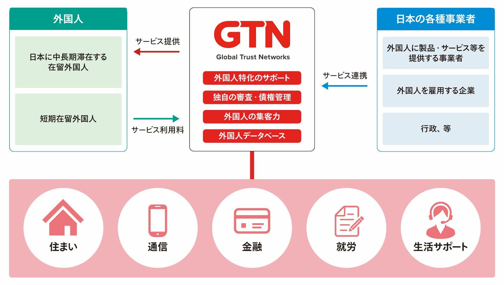 「債権をGTNが引き受ける形でサービス提供企業と提携しています。GTNは未払いのリスクを負いますが、日本に来る外国人材の在留情報やご両親の住所を確保しているので、帰国後も回収が可能です。また、これまで累計利用・支援者数は70万以上に上り、そのデータを審査に生かしています。外国人に特化した生活インフラサービスを長年展開してきたからこそ、リスクを自ら負えるのです」