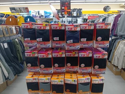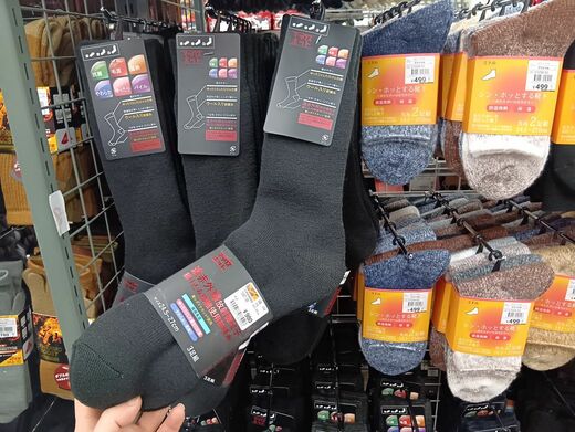 『マックスホット靴下(3足組で税込980円)』『サーモマックス長袖V首(税込1500円)』『EXTRA+サーモマックスロングタイツ(税込1900円)』の3点は、私が訪れたワークマンの店長が“推し”ていた防寒アイテムだ。