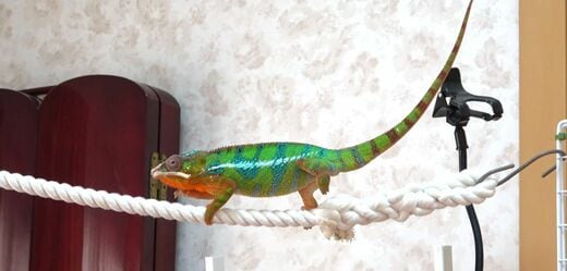 「かーくんに限らず、カメレオンは新しいものが大好きなんです。部屋に散歩ルートを作ってあげようと、枝を吊るしたりロープを張ったりしていたら、すぐ近くまで寄ってきて、ずーっと僕の作業を見守ってくれました。かーくんは特に賢い子でしたね」