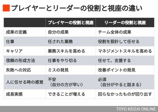 ここで一度、プレイヤーとリーダーの役割・視座の違いを整理しておきましょう。