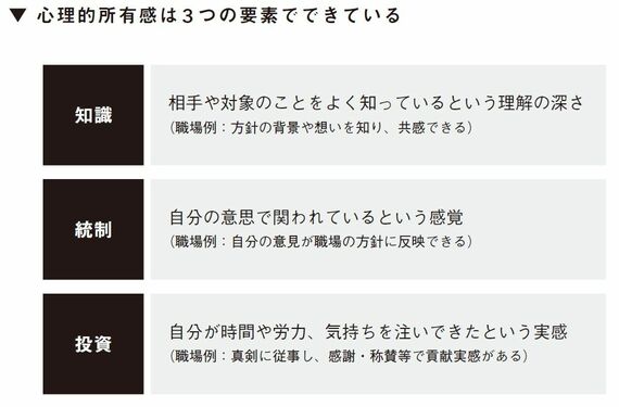 心理的所有感は、「統制」「知識」「投資」という3つの要素によって生まれます。