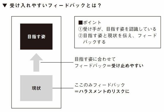 このように、はじめに「合意済みの期待」を再確認してからギャップに触れると、相手にとっては"否定"ではなく"期待"としてのフィードバックとして受け止められやすくなります。