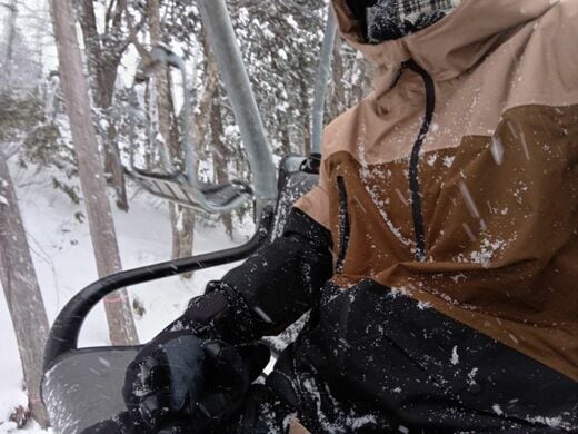 あえてマフラーを選択したのは、ワークマンのスノボウェアは首回りのスペースが広く、ここから冷気や雪が入るのではと懸念したからだ。ゲレンデが晴れている日ならネックウォーマーで問題ない(人によっては何も着けなくても大丈夫かも?)と思うが、雪の日は「厚み」のあるマフラーの方が、このウェアとの相性はいい気がする。