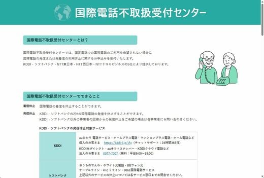 ◎国際電話不取扱受付センターで国際電話の着信を休止しよう
