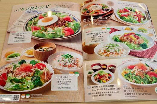 気を取り直してメニュー表をたどると、ようやく「バランスレシピ」のページが現れた。大豆ミートや蒸し鶏を使った料理があり、どの定食もさわやかな表情をしている。