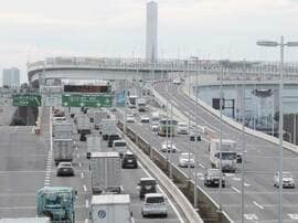 また、湾岸線は大型車の通行比率が際立って高い。首都高の全路線では、走行車両のうちトラックやトレーラーが占める割合は平均約22%にとどまる。これに対し、湾岸線の一部、特に大井埠頭周辺の入口では、その割合が約60%に達する。