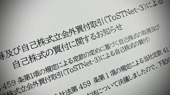 「自己株式立会外買付取引(ToSTNeT-3)による自己株式の買付に関するお知らせ」。2025年には、複数の中小ゼネコンや建材会社が同じ表題の適時開示を行った。2月の大本組や9月の佐田建設など、発行済み株式数の10%を超える大規模な自己株取得に踏み切った会社も見られた。