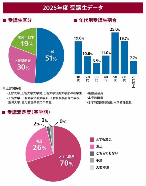 2024年にスタートした上智大学の「上智地球市民講座」が、わずか2年で受講生累計2000名を突破した。中学生から80代まで、幅広い世代が集う学びの場。その特筆すべき点は96%(2025年度春学期受講生実績)という極めて高い満足度だ。