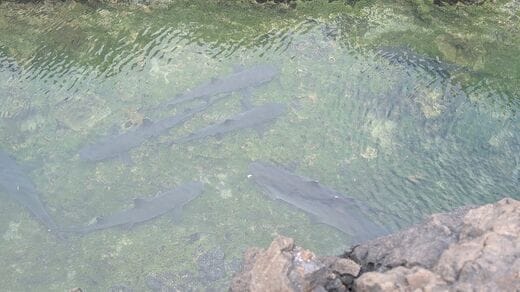 視界の先には黒くて細長い魚の群れがいる。ネムリブカというおとなしいサメらしい。ホステルのオーナーが「サメと泳げる」と言っていたのはこれか。