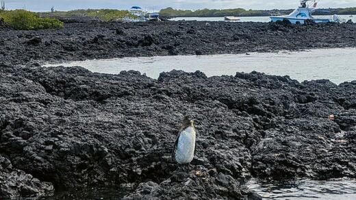 無人島をぐるっと一周すると、ペンギン科の中で唯一赤道付近に生息する絶滅危惧種のガラパゴスペンギンや、ペンキを塗ったような青い足のアオアシカツオドリとも出合えた。