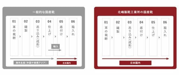 だが、北嶋製靴では革の裁断から縫製、成形、底付け、仕上げまですべての工程を国内で行った「完全国産」である。