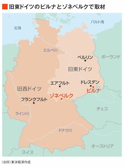 旧東ドイツのテューリンゲン州ゾネベルク市は、かつての東西ドイツの境界に位置している。ピルナ市から特急列車とローカル列車を乗り継いで到着した駅前には、地方の市にしては立派な市庁舎の時計台が、暗がりの中そびえていた。