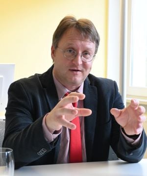 指定された午前10時前に郡役所につくと、特段警備もなく、案内に座っていた女性から、そのまま階段を上って3階にある氏の部屋に行ってくれ、と言われた。ゼッセルマン氏は元弁護士で、眼鏡をかけたやや童顔の人だった。