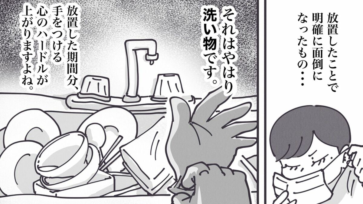 「溜まった洗い物…」 帰宅後の「げんなり汚部屋」爆速でリセットする"ズルい技" 漫画「丁寧ならぬ暮らし」82話