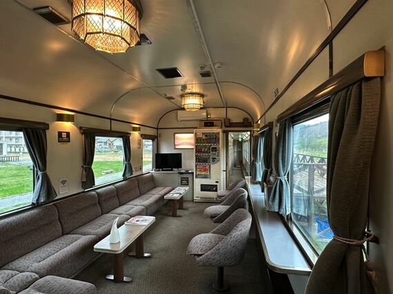 動いている車両ではなくても、寝台列車に寝泊まりできるのは、やはり楽しい。寝台列車に乗って、景色を見ながら飲み食いするのはかつてと同じ体験だし、ロビーカーも懐かしい。用もないのにハシゴを出して2階のベッドに上がってみたりもした。