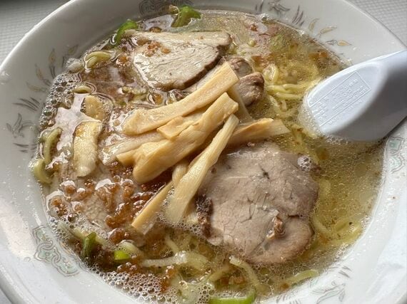メニュー表もおもしろい。「急行ラーメン」「特急ラーメン」などと表記されているが、これは麺の量の違いで、それぞれ1.5玉、2玉となる。私はいつもなら醤油味だが、今日は「普通ラーメン」1玉(塩)にした。ちゃんとラーメンがおいしいところが、通っている理由でもある。
