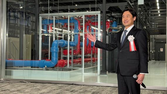 施設には、電力を大量に消費するGPUサーバーの稼働に耐えうる電気設備や、高熱が生じるサーバーの温度を下げるための冷却設備が備わる。とくに冷却技術については、冷水を使ってサーバーを直接冷やす「水冷」方式を導入し、冷気などで冷やす従来型の「空冷」方式と比べて、15倍以上も1サーバーラック(棚)当たりの冷却能力を高めたという。まさに、AI向け利用に最適化されたDCといえる。