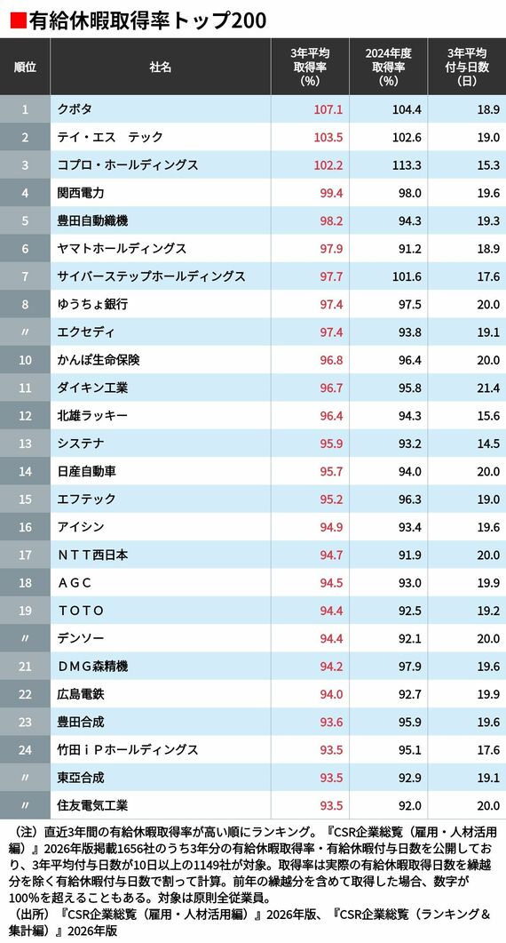 「有給休暇の取得率が高い会社」ランキング 5位豊田自動織機、4位関西電力、ではトップ3は?