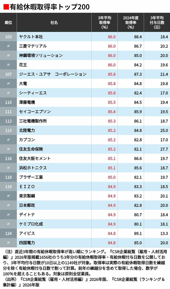 「有給休暇の取得率が高い会社」ランキング 5位豊田自動織機、4位関西電力、ではトップ3は?
