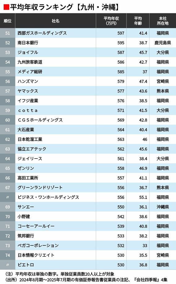 九州・沖縄 51〜74位