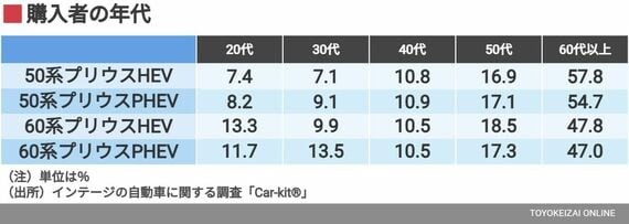 ところが、結果は見ての通り50系から60系で購入者層が低年齢化している。