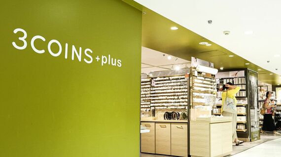 深緑の壁色に、ベージュを基調とした明るい店内。300円台からという手ごろな価格帯で、キッチン用品、電化製品、アクセサリーに至るまで幅広い商品をそろえる「3COINS」(3コインズ)は、女性客を中心に強い支持を集める雑貨店だ。
