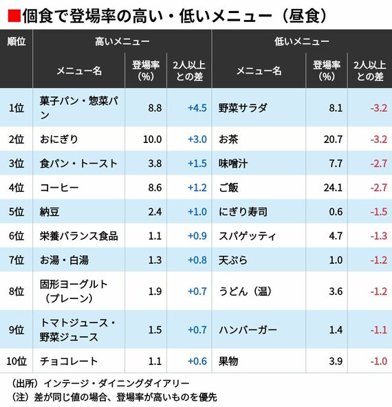 朝はパン、昼はおにぎり、夜はラーメン…日本人の「ソロ飯」を調べて見えた驚きの実態