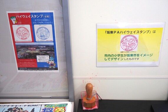 どちらの側にも坂東PAのPRの一環として、市とネクスコ東日本エリアトラクトが、協同で製作したハイウェイスタンプが設置されている。
