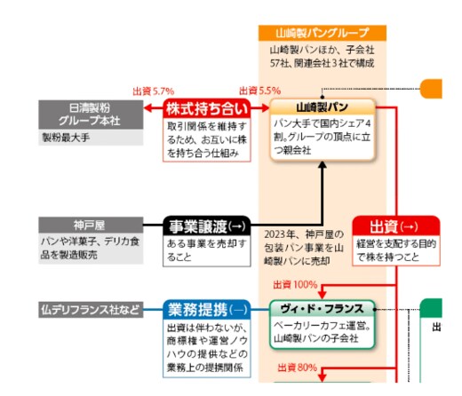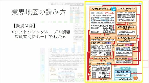 このように3種類の線を駆使することで、企業の提携関係や取引関係などがわかるようになっています。