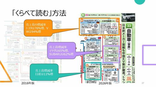 第4回では、昔の業界地図と今の業界地図を比べて変化を読み取り、今後の未来を推測するという「比べて読む」方法についてお話しします。
