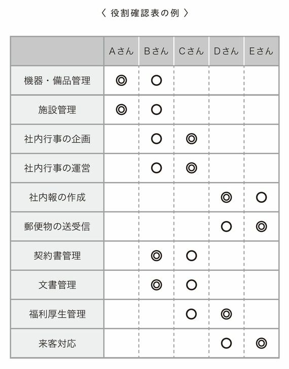 議論の土台を、感情から客観的な事実へと移します。ここで役立つのが、下に示した「役割確認表」のようなチーム全体の役割分担が可視化された資料です。
