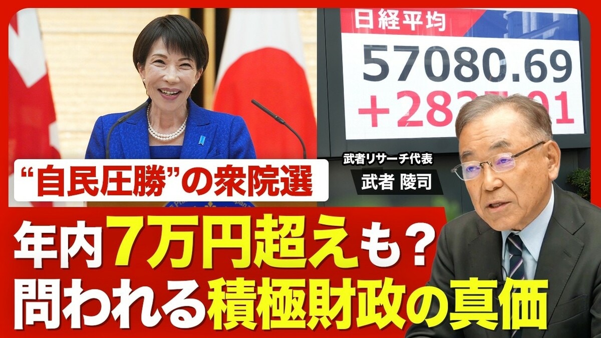 2月8日に投開票が行われた衆議院議員総選挙では、自民党が単独で総定数の「3分の2」以上となる316議席を獲得した。予想を上回る歴史的勝利を受けて日本株相場に弾みがつき、日経平均株価は5万7000円台まで急上昇している。高市政権の安定化を受け、今後の日本株や日本の経済情勢はどうなるか。武者リサーチ代表の武者陵司氏に聞いた。