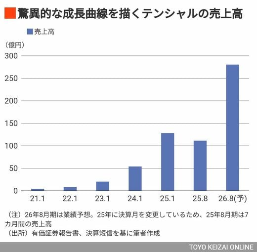 テンシャルの勢いは数字にも表れている。1月13日に発表した26年8月期の第1四半期決算では、売上高は70億7500万円、営業利益は6億5700万円と、いずれも前年同期比で過去最高を更新した。全直営店が営業黒字を達成したことに加え、商品ラインナップを広げたことが功を奏した。