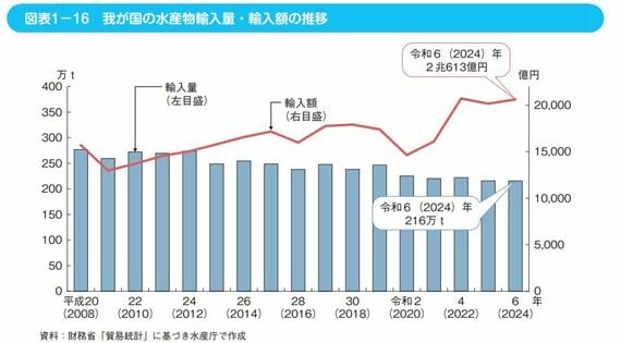 水産物の輸入量が減り、単価も上昇